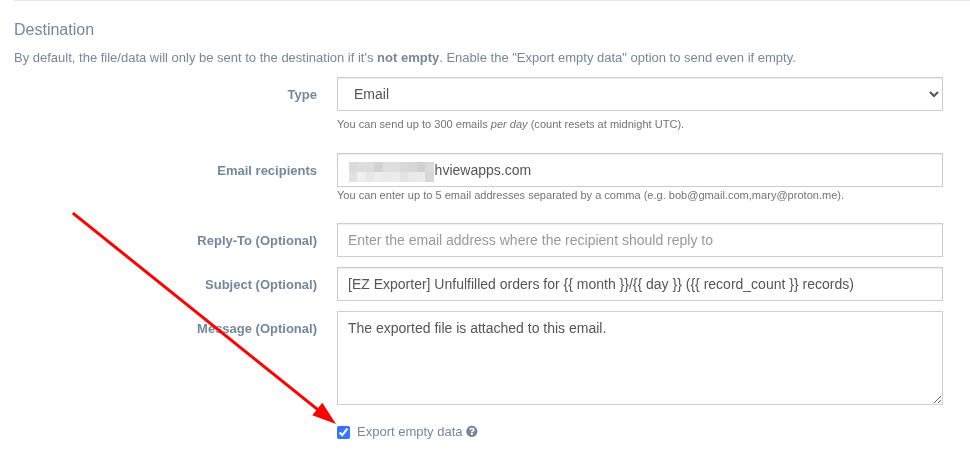When sending the export file over email, we've also added a new variable {{ record_count }} that can be used in the email subject and message, so the email recipient can know ahead of time that the file is empty before opening it.