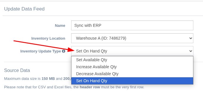 A new inventory update type "Set On Hand Qty" has been added to EZ Inventory. This allows you to set/overwrite the "on hand" quantities of variants in Shopify by location.