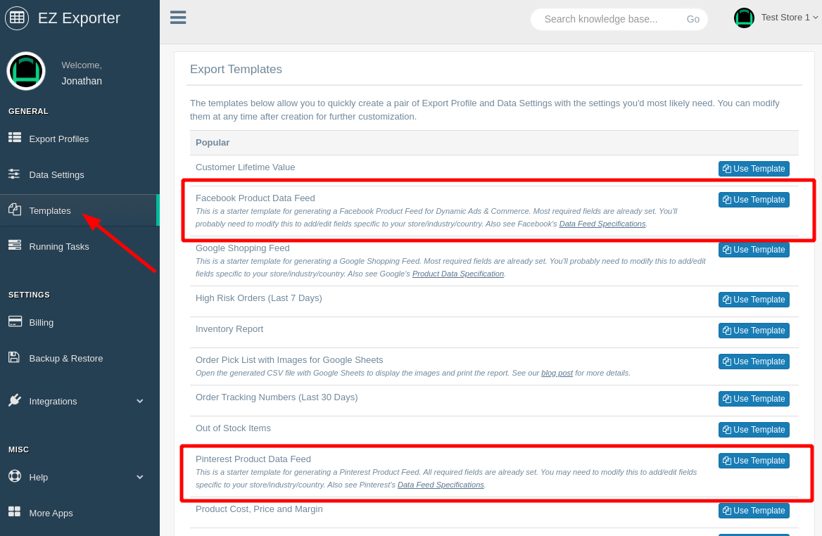 To use these templates in EZ Exporter, simply go to the "Templates" page and click the the "Use Template" button next to the template you'd like to use: