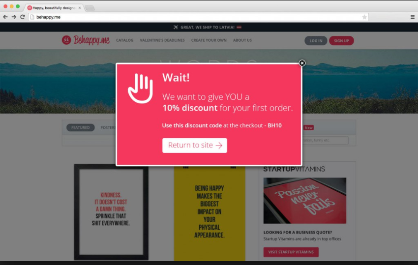 This could very well be a cat in the bag for you. As I said, shipping costs are part of the problem for many consumers. In the event that you can't eliminate the costs altogether, perhaps you can offer a discount on the products that they are purchasing. The consumer won't know you plan to do this until they attempt to leave the page or shopping cart. If they try to leave, the consumer will be presented with a pop-up that will encourage them to remain on the site and purchase the goods they were viewing.