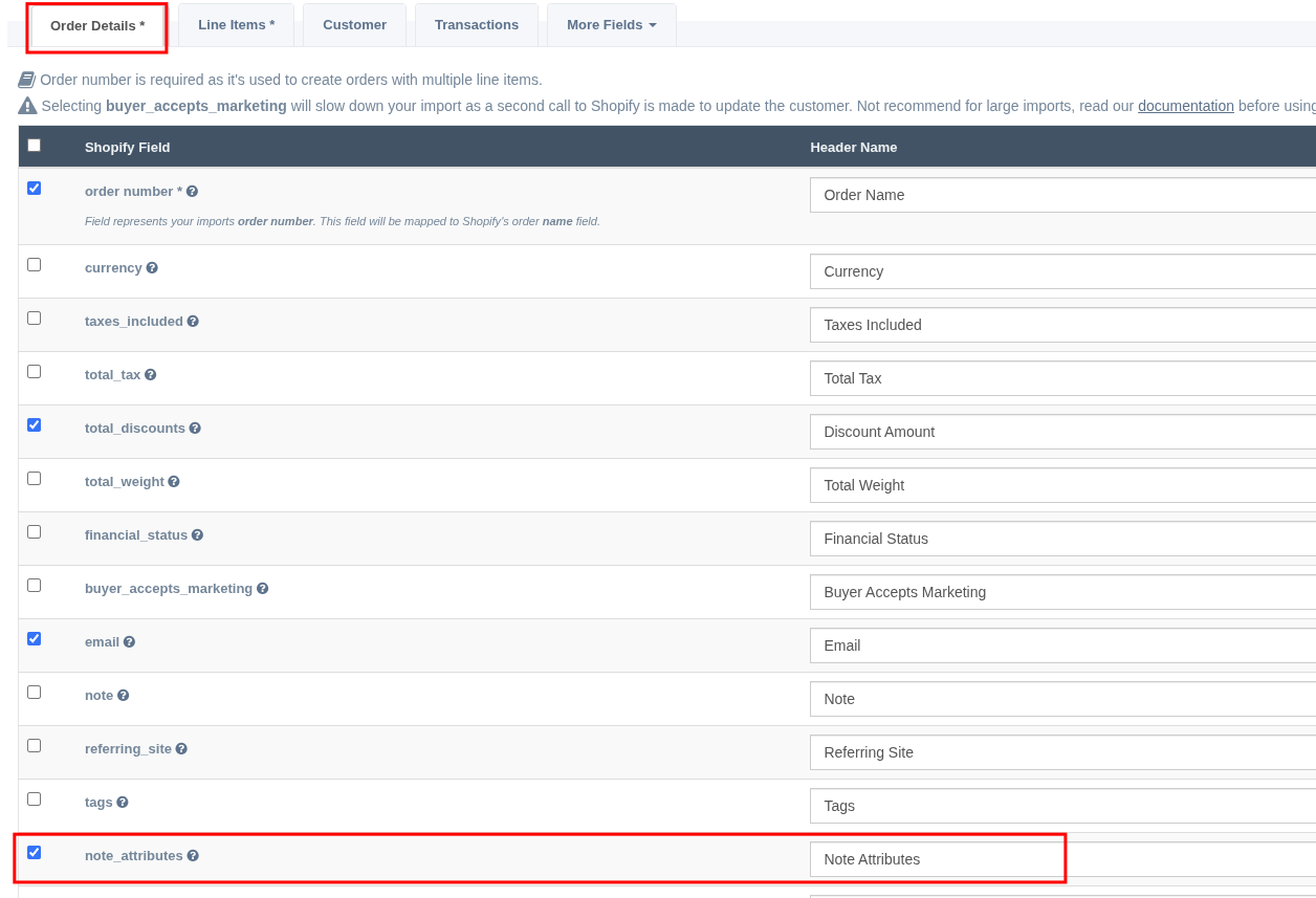 To map note attributes (cart attributes), simply match the column name in your file to the note_attributes field on the Order tab.